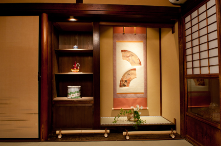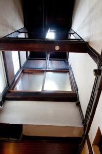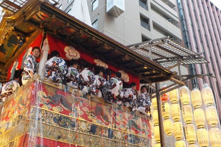 四条烏丸交差点東に長刀鉾はあります。横の建物の2階から、 鉾上に参ります。もちろん男性しか鉾には上がれません。 夕闇が迫るころにコンチキチンの金の音と笛が鳴り響き、 祭りムードが盛り上がります。
