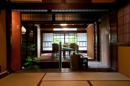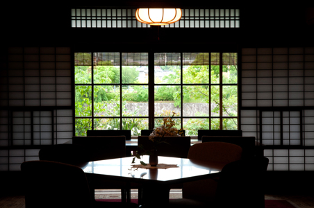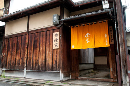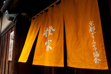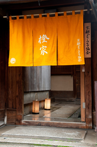 「橙家」は屋号。初めての方もこの「のれん」ですぐに分ります。