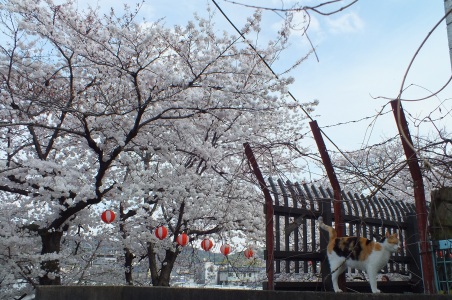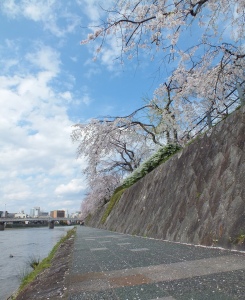 写真は3月初旬の高瀬川。ははっさくなのでしょうか、果実がいっぱい川裾に垂れています。静かな風景にコントラストを作りだしてとても奇麗です。