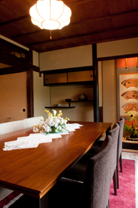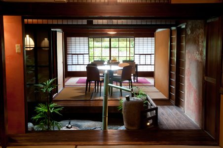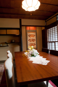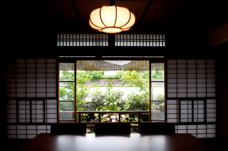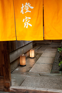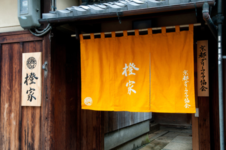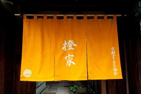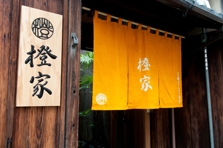 「橙家」は屋号。初めての方もこの「のれん」ですぐに分ります。
