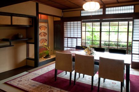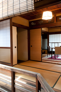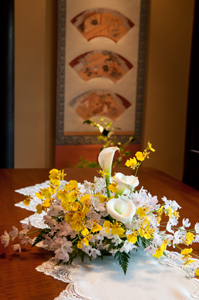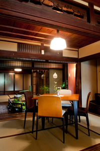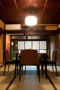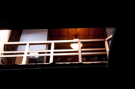 四条烏丸交差点東に長刀鉾はあります。横の建物の2階から、 鉾上に参ります。もちろん男性しか鉾には上がれません。 夕闇が迫るころにコンチキチンの金の音と笛が鳴り響き、 祭りムードが盛り上がります。