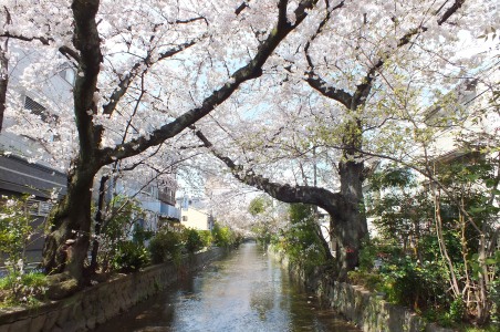 高瀬川は、二条大橋の南で鴨川西岸を併走する「みそそぎ川」(鴨川の分流)から取水。二条から木屋町通沿いの西側を南下し、十条通の上流で鴨川に合流しています。